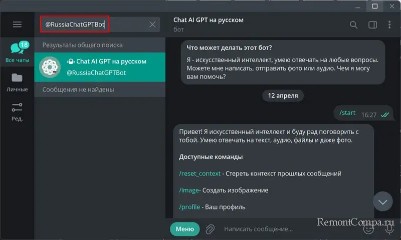 И, друзья, самый оптимальный вариант, как использовать ChatGPT в России и Беларуси – в Телеграмме. ChatGPT интегрирован в чат-бот Телеграмм, и для доступа к нему не нужно ни авторизации, ни VPN. В поиске мессенджера вводим: