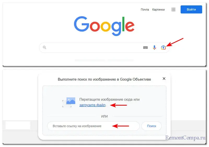 Google Lens, т.е. Google Объектив – визуальный поиск от Google. Интегрирован в поисковик Google. При нажатии его кнопки появляется форма получения изображения. Его можно загрузить как файл, либо вставить ссылку, если оно опубликовано в Интернете. В форму для вставки ссылки также можно вставить изображение, скопированное в буфер обмена.