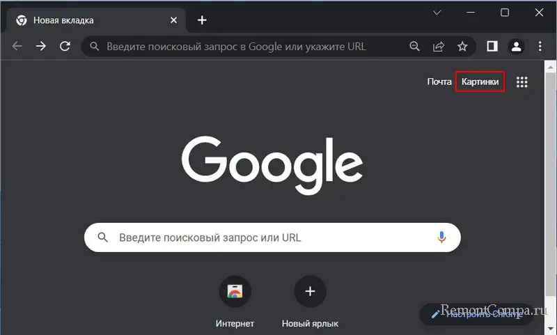 Отсылка на сервис визуального поиска Google присутствует на стартовой странице браузера Chrome в виде надписи-ссылки «Картинки».
