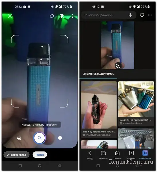Визуальный поиск Bing встроен в мобильные приложения компании Microsoft – Bing, Microsoft Edge для iOS/Android и Microsoft Launcher для Android. В этих приложениях поиск выполняется по изображению, загруженному с памяти устройства или снятому камерой. Возможности визуального поиска те же, что и у веб-сервиса. Есть дополнительная функция сканера QR и штрихкодов.