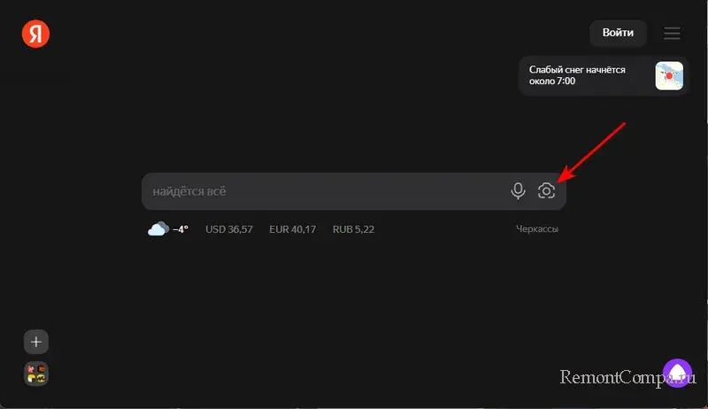 Поиск по загруженной из файла картинке можно выполнить прямо из поисково-адресной строки Яндекс.Браузера.