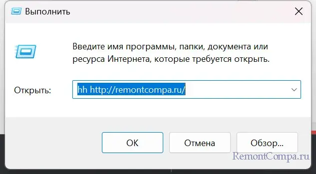 2. Пишем hh http://адрес сайта/. Например, hh http://remontcompa.ru/. Если адрес у сайта с протоколом https, вводим все равно http.