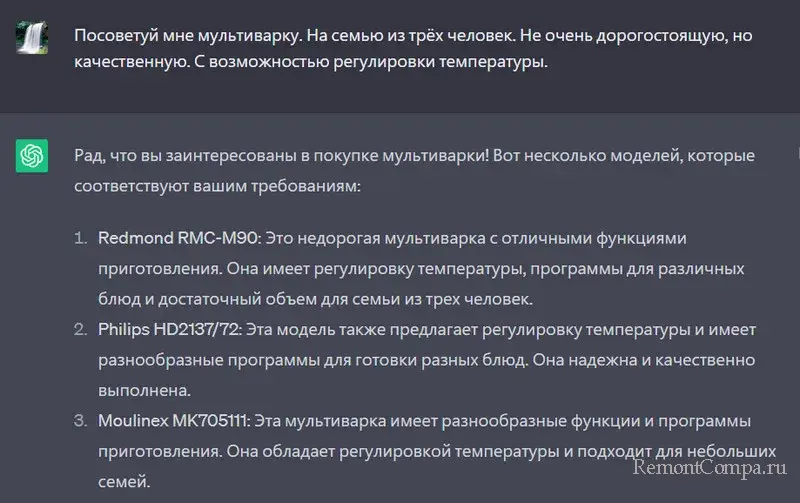 - Максимальная конкретика. Общаться с чат-ботом необходимо с позиции, что он не знает ничего о нас – кто мы, где живём, какой у нас стиль жизни, сколько чего нам надо, какие у нас приоритеты. Это не относится к получению справочной информации или ведению философских бесед. Но имеет значение при покупке товаров, различных просчётах, получении советов, инструкций и т.п. Если у нас не хватает профильных знаний, чтобы максимально конкретно поставить вопрос или задачу, можно просто дать чат-боту некоторую информацию о себе.
