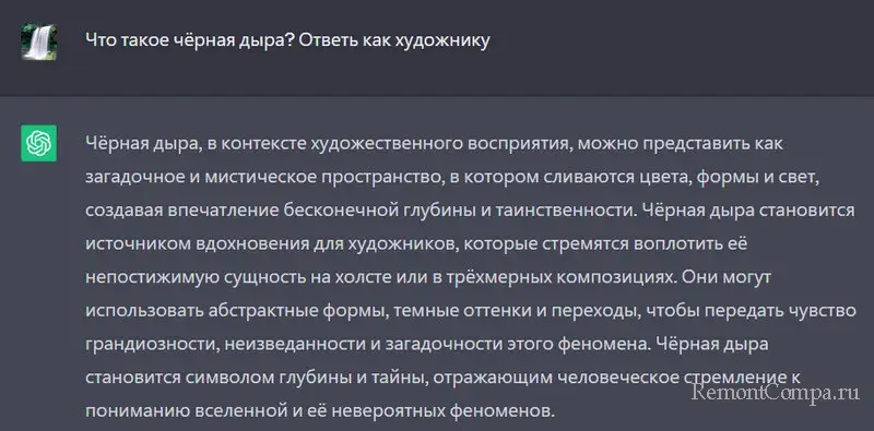 Если вопрос сложный, предусматривает массу граней, аспектов, контекстов, можно просить умные чат-боты отвечать с учётом профиля пользователя. Например, ответь как художнику, поэту, конструктору и т.п.