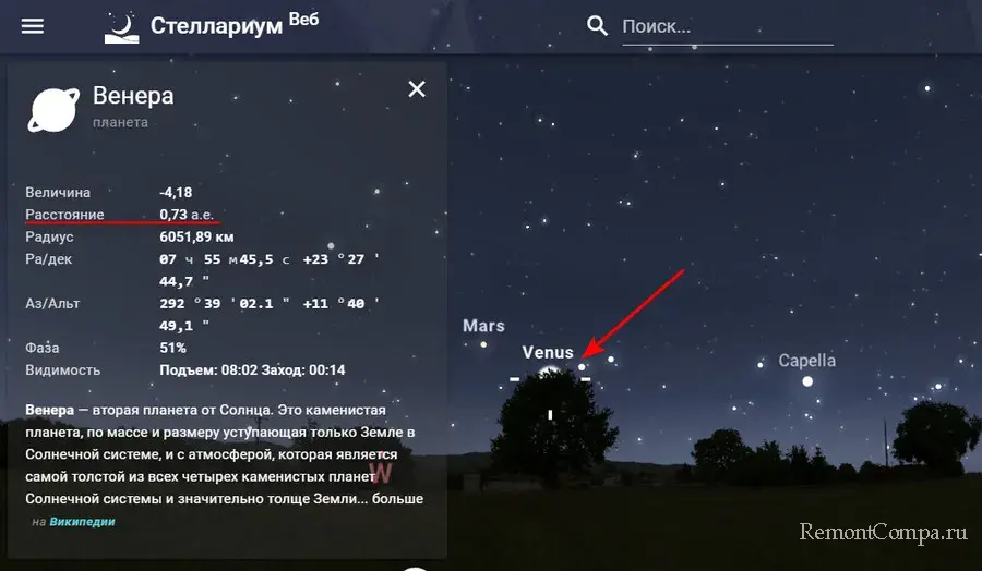 Bing AI был пойман нами на выдумке точного факта – на каком расстоянии находится планета Венера от Земли сейчас (в день запроса информации). Точный ответ на этот вопрос знает виртуальный веб-планетарий Stellarium. Расстояние от Земли до Венеры в день запроса составляло 0,73 а.е., это немногим больше 109 млн. км.