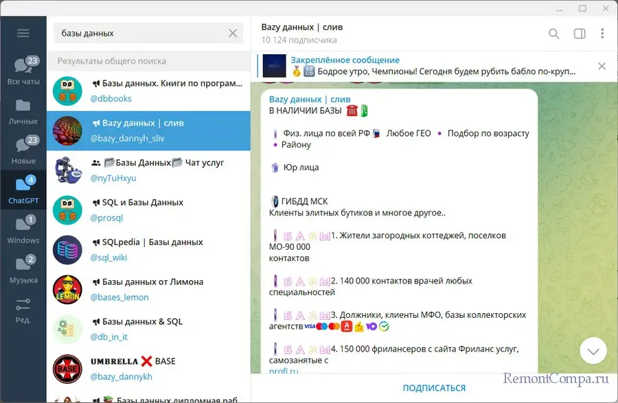 В Интернете можно встретить сайты, объявления на торговых площадках, группы в Телеграмм, где предлагается продажа клиентских баз данных.