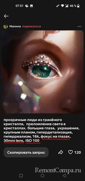 Изучая посты и их задания, можно делать выводы, как неправильно ставить задачи перед нейросетью, и учиться, как ставить задачи правильно. Учиться у пользователей, публикующих интересные посты и генерирующих эффектные картинки. В частности, смотреть, какими терминами и характеристиками пользователи, возможно, являющиеся профессиональными графическими дизайнерами или фотографами, оперируют в описаниях генерации картинок. На таких пользователей можно подписываться и отслеживать их публикации.