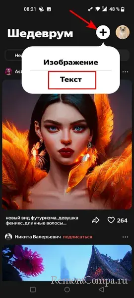 Рисующая нейросеть YandexART от Яндекса в мобильном приложении «Шедеврум»