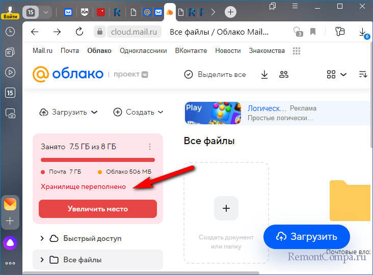 ↑ Нехватка места в облаке