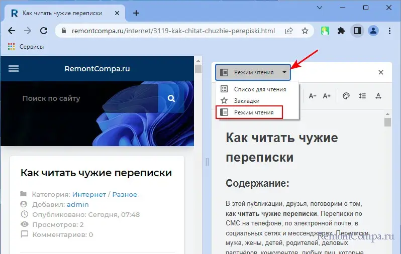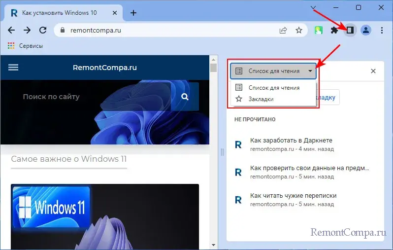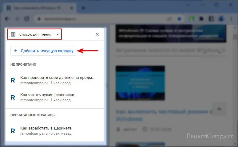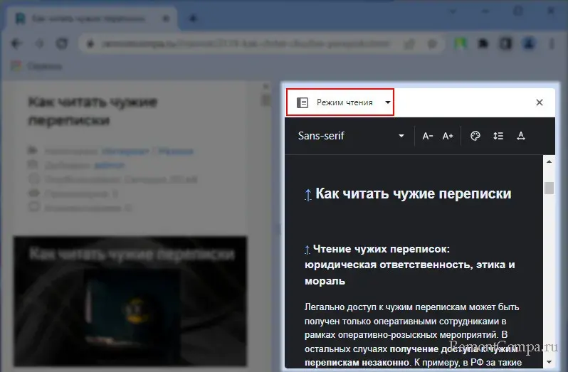 И, друзья, на боковой панели Chrome может быть ещё одна функция – режим чтения.