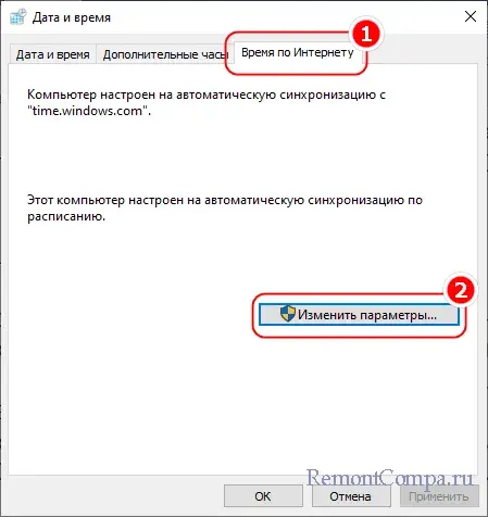 В случае появления ошибки только на одном устройстве проверьте корректность настроек даты и времени. Решается проблема элементарно, путём включения автоматической синхронизации времени с сервером. Для этого откройте командой timedate.cpl апплет «Дата и время», переключитесь на вкладку «Время по Интернету», нажмите кнопку «Изменить параметры», установите флажок «Синхронизировать с сервером времени в Интернете» и нажмите «Обновить сейчас».