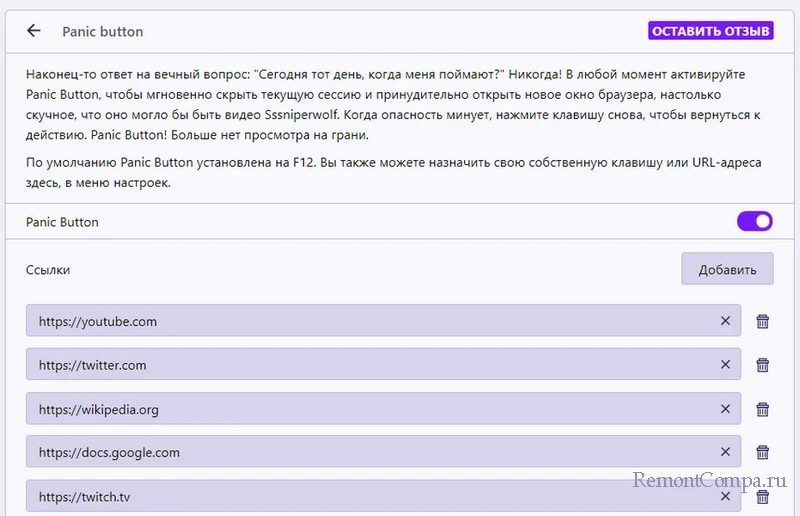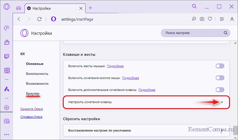 Сменить F12 в качестве кнопки паники можно в настройках сочетания клавиш Opera GX.