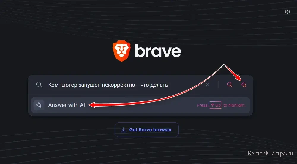 Brave – это поиск в рамках проекта известного браузера Brave. Что браузер, что поисковик во главу угла ставят конфиденциальность пользователей. В браузер интегрирован ИИ-бот Лео, это интерактивный бот, поддерживает разные языковые модели нейросети. У поисковика возможности чуть проще: есть просто функция ответа ИИ-ассистента, можем выбрать её при вводе запроса вместо обычного поиска.