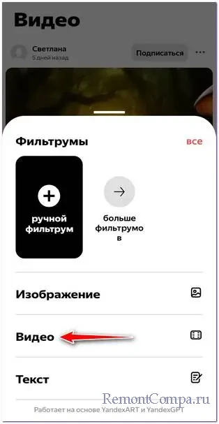 Мобильное приложение «Шедеврум» выполнено по типу социальной сети, где сгенерированный её пользователями контент доступен публично. В этом приложении можем зайти в раздел видеоконтента и ознакомиться с опубликованными видеороликами, сгенерированными нейросетью. Можем оценить качество роликов, посмотреть какие пользовательские запросы как работают, взять какие-то идеи для своих роликов и т.п. Для создания своего видео в приложении «Шедеврум» жмём кнопку-плюсик.
