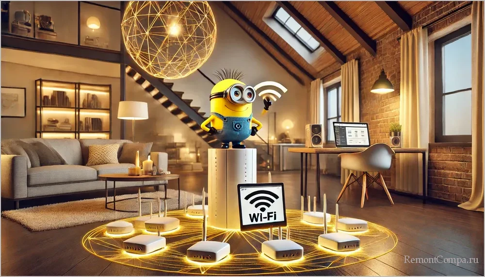В больших домах, многоквартирных комплексах или офисах, где один стандартный роутер не может обеспечить стабильное соединение во всех уголках помещения, используются MESH-системы. MESH-система — это сеть узлов (главного роутера и дополнительных точек доступа), расширяющая покрытие Wi-Fi в помещении. Их совместная работа улучшает сигнал и делает подключение более стабильным на больших площадях. Тогда как обычный роутер может покрывать ограниченную территорию – обычно до 50 м в помещении и до 100 м на открытом пространстве. Пользовательские устройства в сети автоматически подключаются к наиболее сильному источнику сигнала.