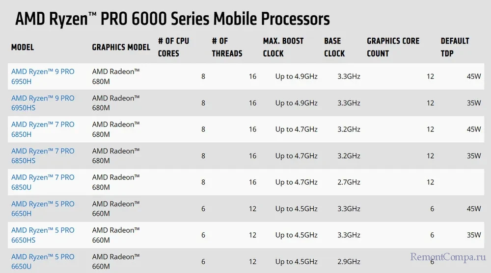 От них процессоры Ryzen PRO 6000 отличаются набором функций безопасности и управляемости по сети. Подробнее о них кому интересно смотрим на сайте AMD.