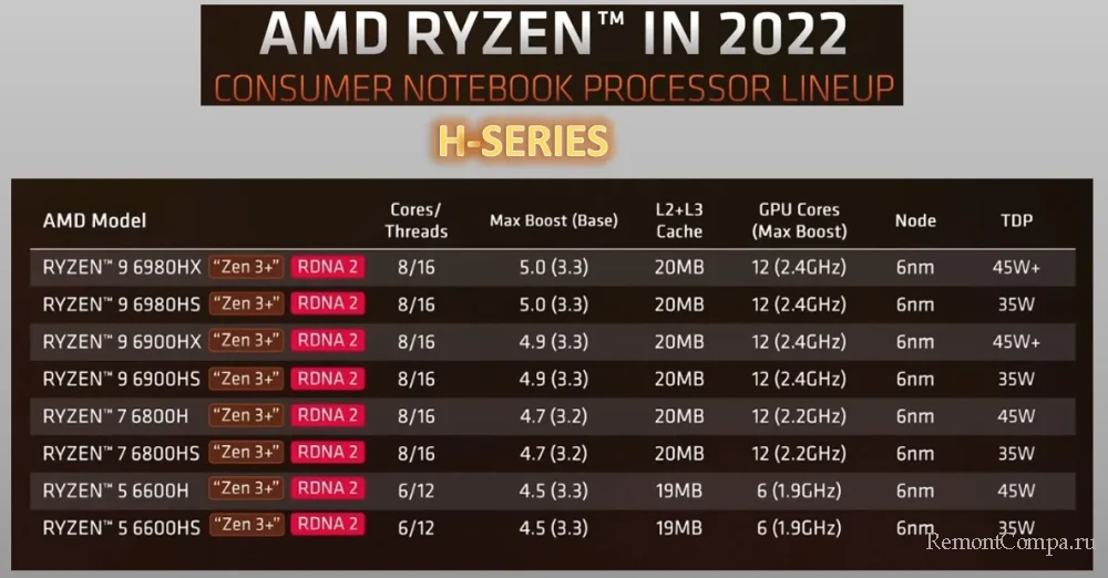 ↑ Мобильные AMD Ryzen 6000: основные характеристики