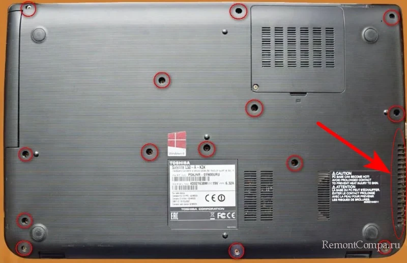 Приведу пример из жизни. Перед вами ноутбук, который сильно греется и у него гудит вентилятор. В первую очередь смотрим не забиты ли пылью вентиляционные отверстия корпуса ноута.