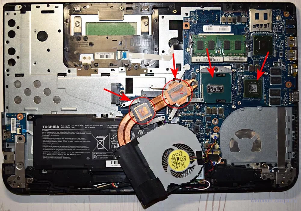 За длительное время эксплуатации в корпусе ноутбука скапливается домашняя пыль, ворс и другие загрязнения. Оседая на поверхности процессора, видеокарты и материнской платы, они снижают эффективность теплообмена, что в свою очередь приводит к усиленной работе кулеров.