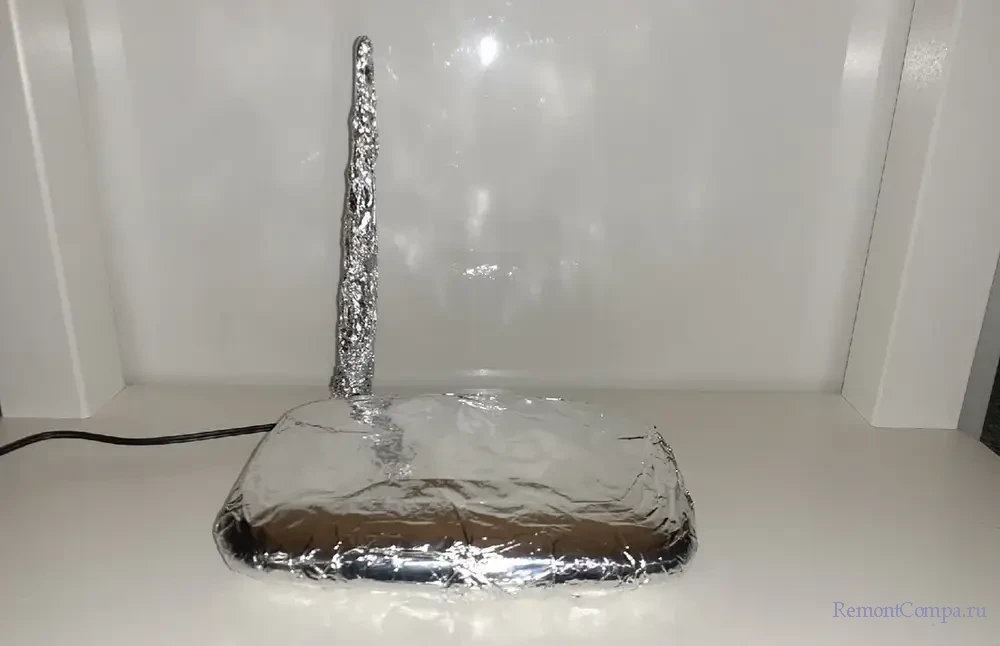 ↑ Покрытие Wi-Fi роутера фольгой для улучшения сигнала