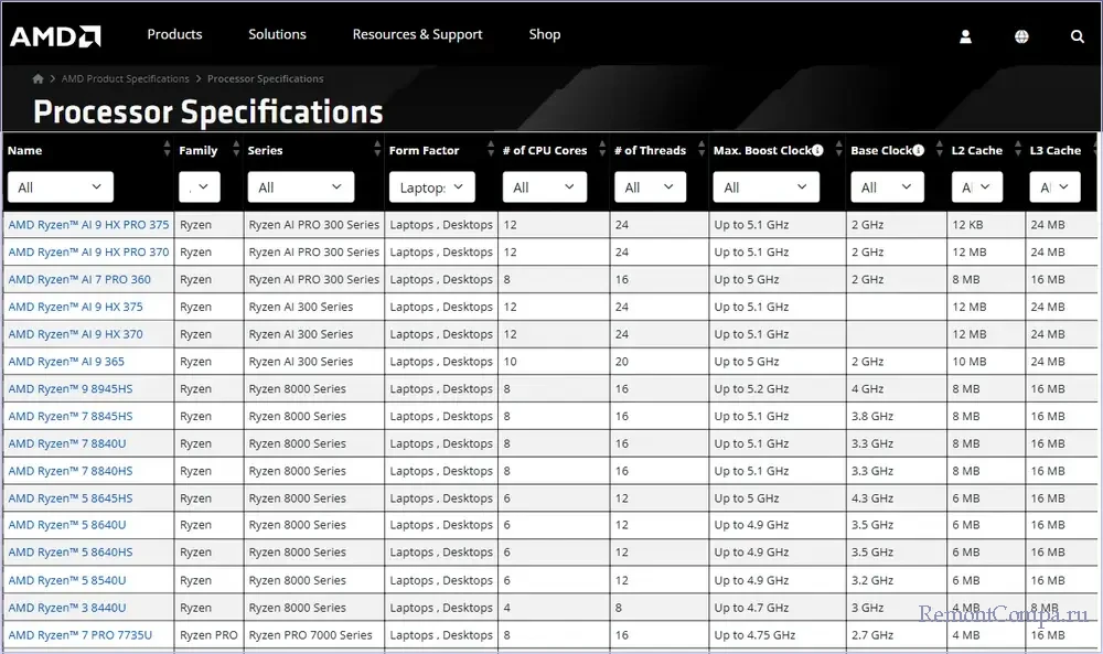 Линейки современных мобильных процессоров для ноутбуков у компании AMD такие: