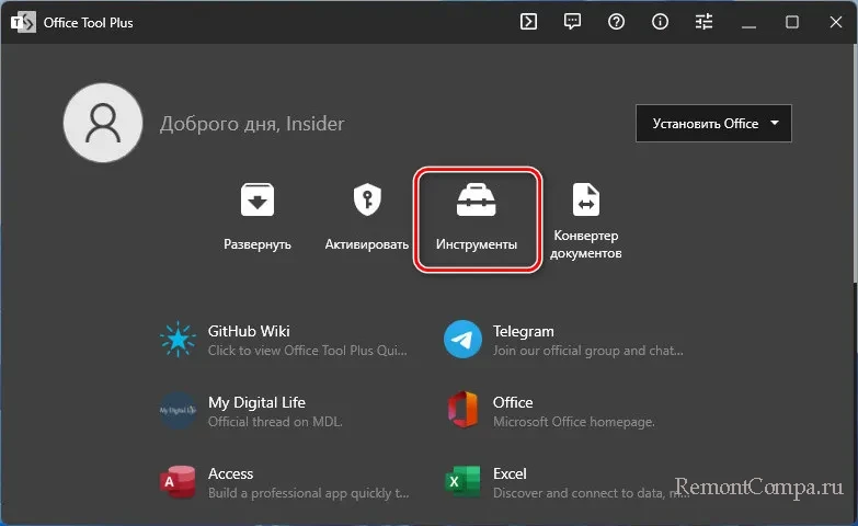 Тем не менее если у вас последняя версия ритейл-пакета Microsoft Office, на данный момент это Office 2021, возможность поучаствовать в офисной инсайдерской программе есть. Но для этого необходимо обратиться к специальному инструменту развёртывания Office.