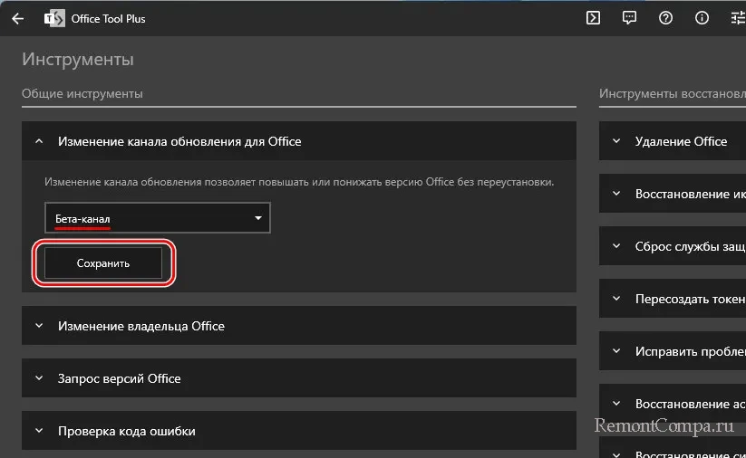 Далее нам необходим инструмент переключения на бета-канал обновлений. Таким инструментом является бесплатная утилита Office Tool. Она базируется на официальном инструменте развёртывания офисных приложений Microsoft Office Deployment Tool. Но предлагает этот инструмент в понятном для обычного пользователя интерфейсе, без необходимости проведения шаманских плясок. С её помощью можно скачивать любой Microsoft Office. И продлевать триал-срок использования Microsoft Office.