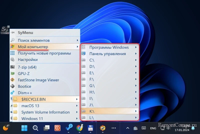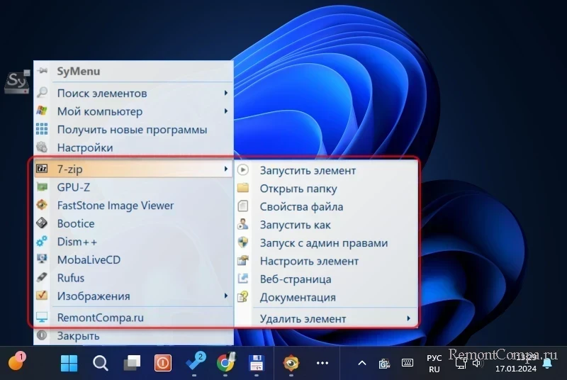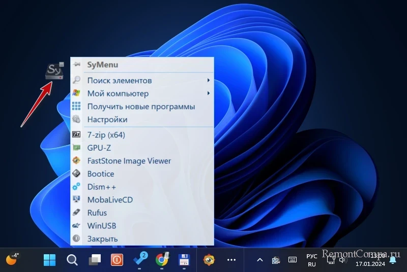 SyMenu – программа, реализующая в Windows начиная с версии 10 своё системное меню. Это меню появляется при клике на значок программы в системном трее.