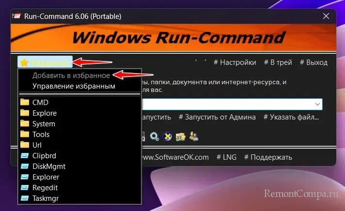 И, пожалуй, самая полезная функция этой утилиты – среда «Избранное» для объектов открытия и возможность добавления своих объектов.