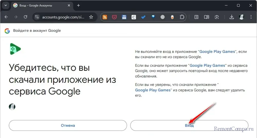 После установки Google Play Games авторизуемся в нём как в обычной программе с помощью Google-аккаунта.