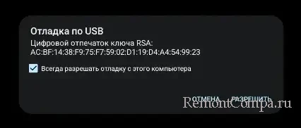В окошке запроса на включение отладки по USB можем предоставить разрешение. Отладка может пригодиться при установке сторонних игр.