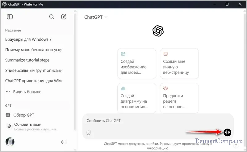 Приложение ChatGPT для Windows 10 и 11 с голосовым чатом