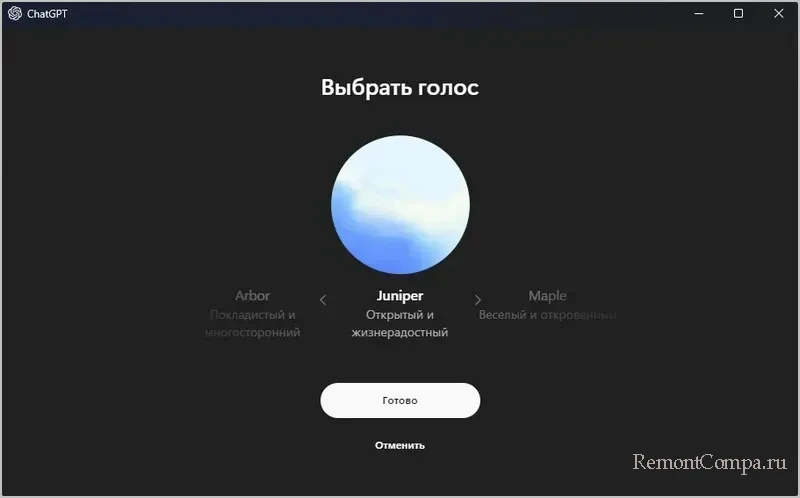 Ну и фишка официальных клиентских приложений ChatGPT, в частности, Windows-приложения из Microsoft Store, то, что недоступно в веб-версии – голосовой чат.