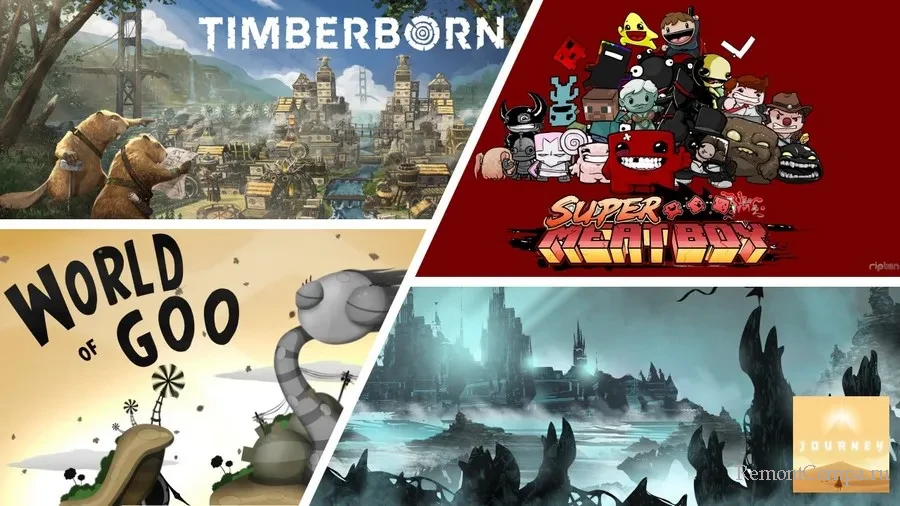 Другие инди-игры: Timberborn, Journey, Braid, World of Goo, Super Meat Boy, Limbo, Inside.
