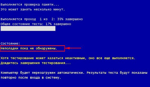 Наш компьютер перезагружается и происходит проверка оперативной памяти на ошибки.