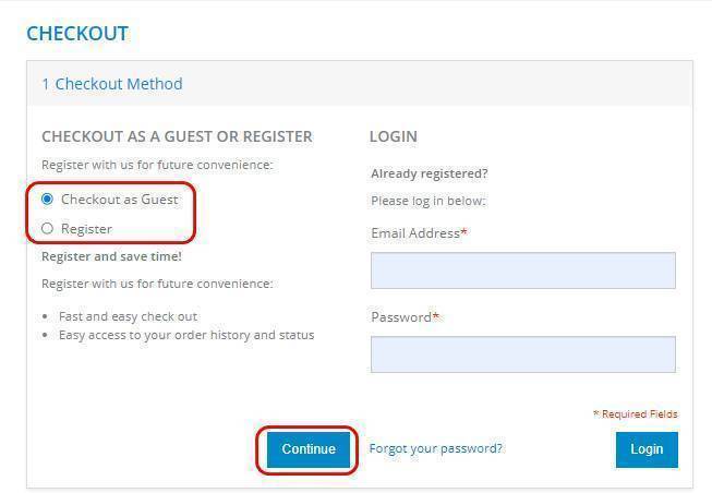 Выполняем авторизацию на сайте GoDeal24. Для этого можно зарегистрировать аккаунт, выбрав «Register». А можно купить продукт в качестве гостя без регистрации и авторизации, выбрав «Checkout as Guest». В обоих случаях нужно вносить свои личные данные, и регистрация выгоднее, поскольку в таком случае в нашем магазинном аккаунте будут фиксироваться наши покупки. И в дальнейшем при совершении покупок на сайте магазина нам достаточно будет просто авторизоваться. Но, что лучше, выбирать вам.