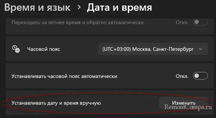 4. Возле "Установка даты и времени вручную" нажимаем "Изменить".
