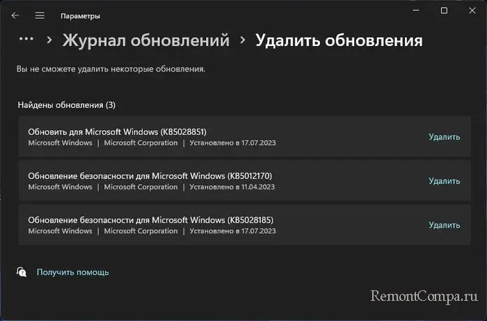 2. Далее переходим по маршруту "Центр обновления Windows" — "Просмотр журнала обновлений" — "Установленные обновления".