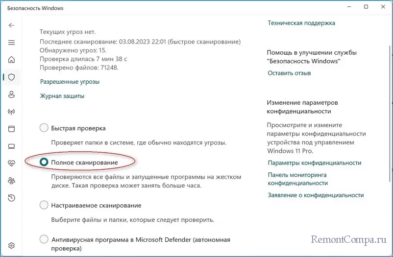 Что предпринять в первую очередь? Первым делом проверяем ПК на наличие вирусов, так как нежелательное ПО может вызывать данную проблему. Сделать это лучше всего встроенным Windows Defender в автономном режиме.