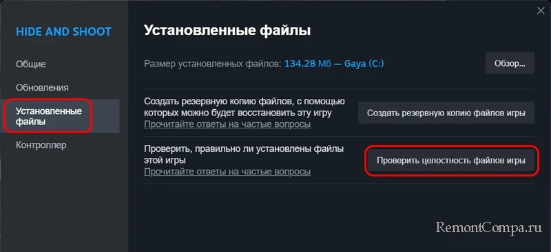 В разделе «Установленные файлы» кликаем «Проверить целостность файлов игры».