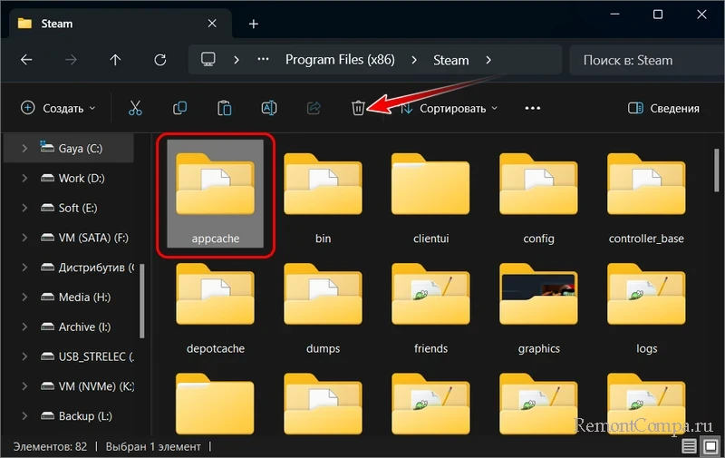 Ошибка «Application load error 5: 0000065434» может возникнуть из-за проблем с файлами игры, которые хранятся в кэше Steam. Очистка кэша Steam может помочь устранить эти проблемы, поскольку заставит Steam загрузить актуальные и целостные файлы игры. Открываем в файловой системе путь установки Steam: