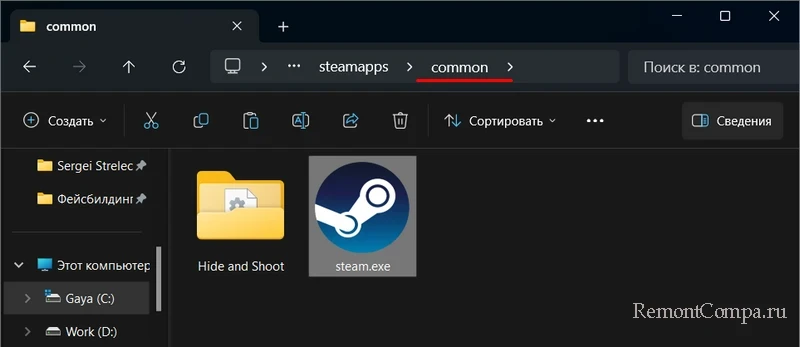 Если рассматриваемая ошибка возникает при запуске нескольких игр, можно скопированный файл steam.exe поместить в папку «common», что на уровень выше. Её путь: