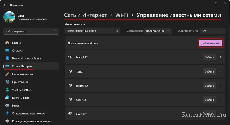 Если всё это не даёт результата, можно забыть сеть Wi-Fi и добавить её по новой, но на этот раз с указанием параметров подключения вручную. В Windows 11 для этого в приложении «Параметры» открываем раздел: