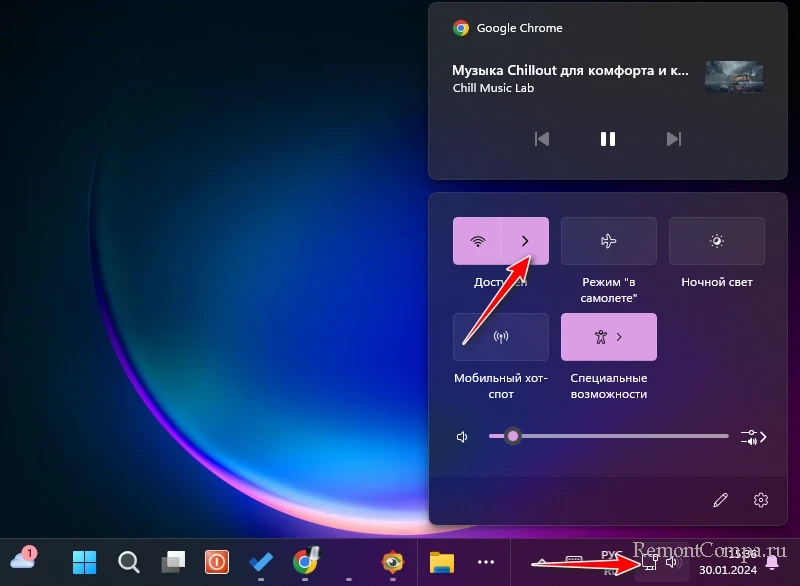 После создания нового подключения пробуем подключиться к сети Wi-Fi, как подключаемся обычно – кликом по значку Wi-Fi на панели быстрых действий Windows 10 и 11.
