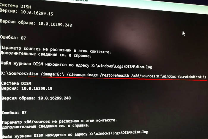 Dism /image:C:\ /Cleanup-Image /RestoreHealth /Source:M:\Windows /ScratchDir:D:\1