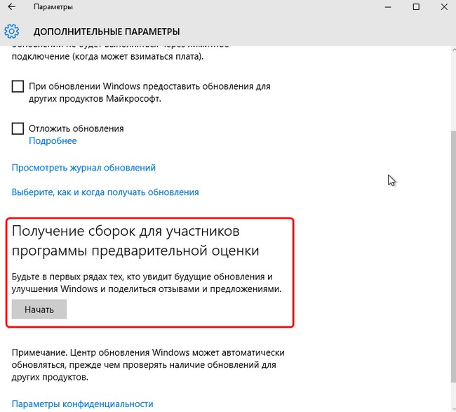 - Почему мне приходиться скачивать и устанавливать все выходящие сборки Windows 10 Insider Preview заново, например, два месяца назад вышла сборка 10130 и я её установил, затем вышла сборка 10147 и мне приходиться удалять 10130 и затем устанавливать заново 10147. Последняя сборка, которую я установил таким образом, это 10162, но после её выхода больше сборок на оф. сайте Майкрософт не выкладывалось. Мой же знакомый, участвует в какой-то программе Windows Insider Program и вообще новые сборки Windows 10 не скачивает, а они ему приходят в виде обновлений, то есть установил он сборку 10130, а она у него сама обновилась до 10147, 10162, и вчера обновилась до финальной 10240. Я тоже хочу так!