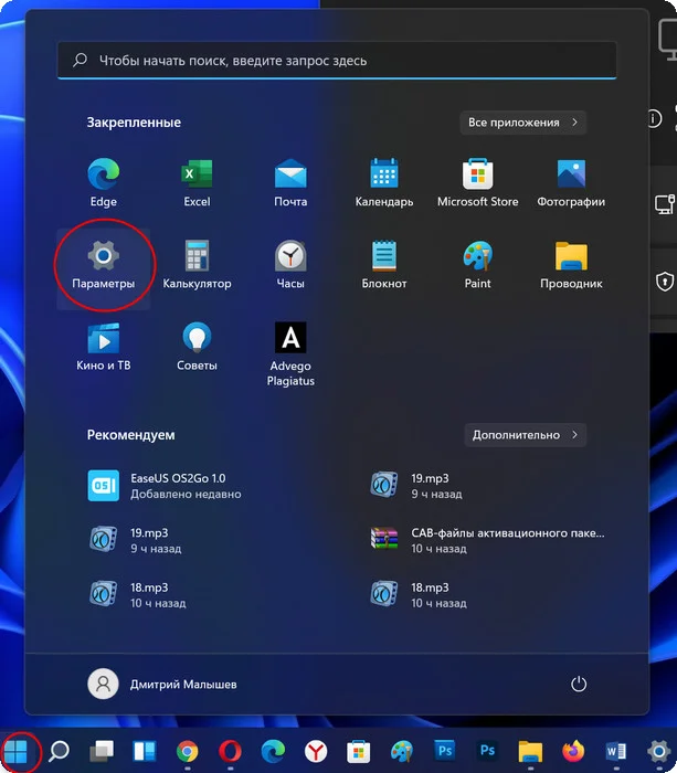 1. Нажимаем Пуск и заходим в "Параметры" или используем "Win+I".