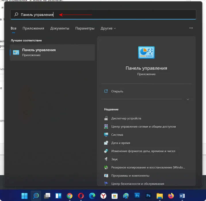 1. В поиске системы вводим "Панель управления" и жмём на результат.