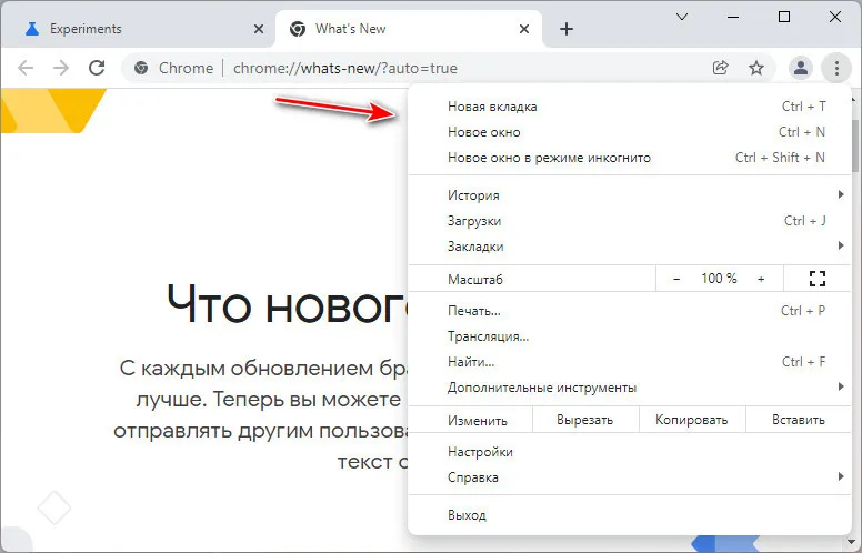 После перезапуска у нас в Chrome будут скруглённые углы меню. В главном меню.