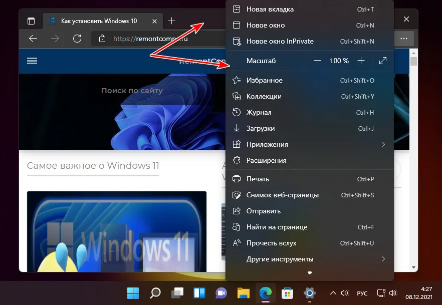 Будучи родственником Chrome, ибо базируется на единой с ним платформе Chromium, браузер Microsoft Edge мог бы стать идеальным современным браузером формата «из коробки». Если бы он был таким же быстрым, как Chrome. Если бы Microsoft не совала в него желтушные новости со своего новостного портала. И если бы в целом в нём не было тяжеловатой атмосферы и политики продуктов Microsoft, а это всё равно чувствуется, сколь бы компания ни пыталась замаскировать внешней отделкой и разными функциональными плюшками. Тем не менее Microsoft Edge – это самый адаптированный под стиль Windows 11 браузер. У него внутри скруглённые углы меню, панелей и форм, но это общий стиль браузера для всех операционных систем. Что же касается соответствия конкретно Windows 11, в интерфейсе Edge, работающего в этой операционной системе, реализован эффект слюды Mica. Лёгкую прозрачность и адаптивность к используемой системной теме Windows 11 можем наблюдать в верхушке браузера, в главном меню.